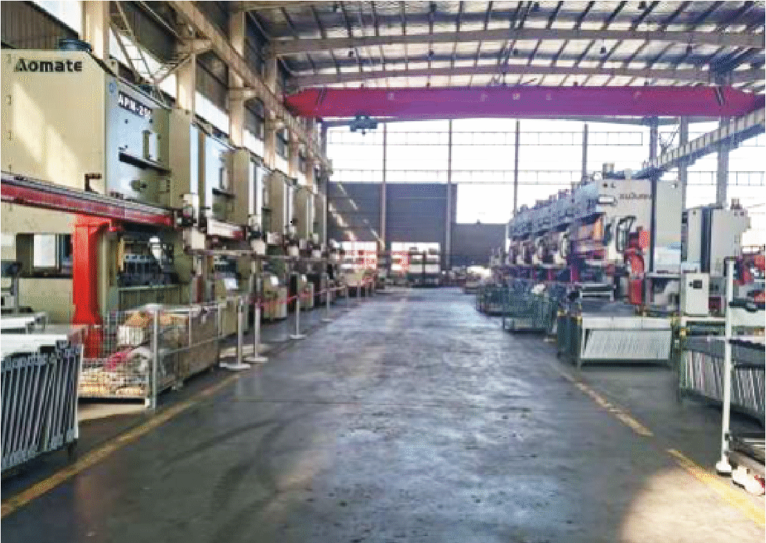 公司擁有大、中、小型沖壓、焊接、數(shù)控機(jī)械設(shè)備兩百余臺(tái)套,25噸至600噸的主要設(shè)備有:閉式?jīng)_床、開式?jīng)_床、油壓機(jī)、六軸機(jī)器人、四軸機(jī)器人、單點(diǎn)沖床、自動(dòng)剪板機(jī)、壁掛式機(jī)械手(二次元機(jī)械手、三次元機(jī)械手)、壓縮機(jī)機(jī)殼生產(chǎn)線、數(shù)控打板機(jī)、數(shù)控折彎?rùn)C(jī)、數(shù)控轉(zhuǎn)塔沖床、激光切割機(jī)、接水盤自動(dòng)化線、自動(dòng)焊接機(jī)、自動(dòng)攻絲機(jī)、全自動(dòng)超聲波清洗機(jī)等,目前已有七條全自動(dòng)生產(chǎn)線,基本已實(shí)現(xiàn)自動(dòng)化生產(chǎn)。